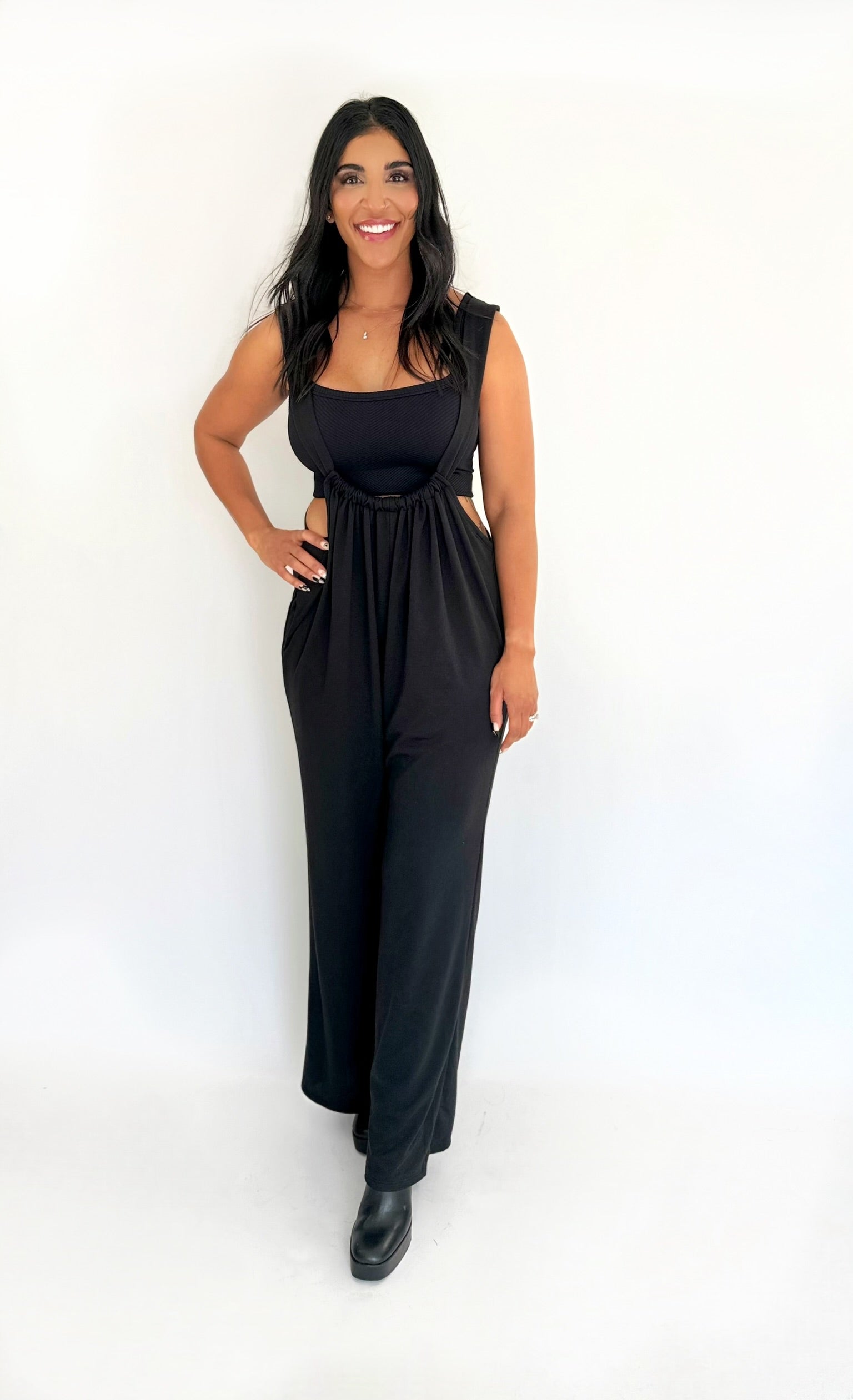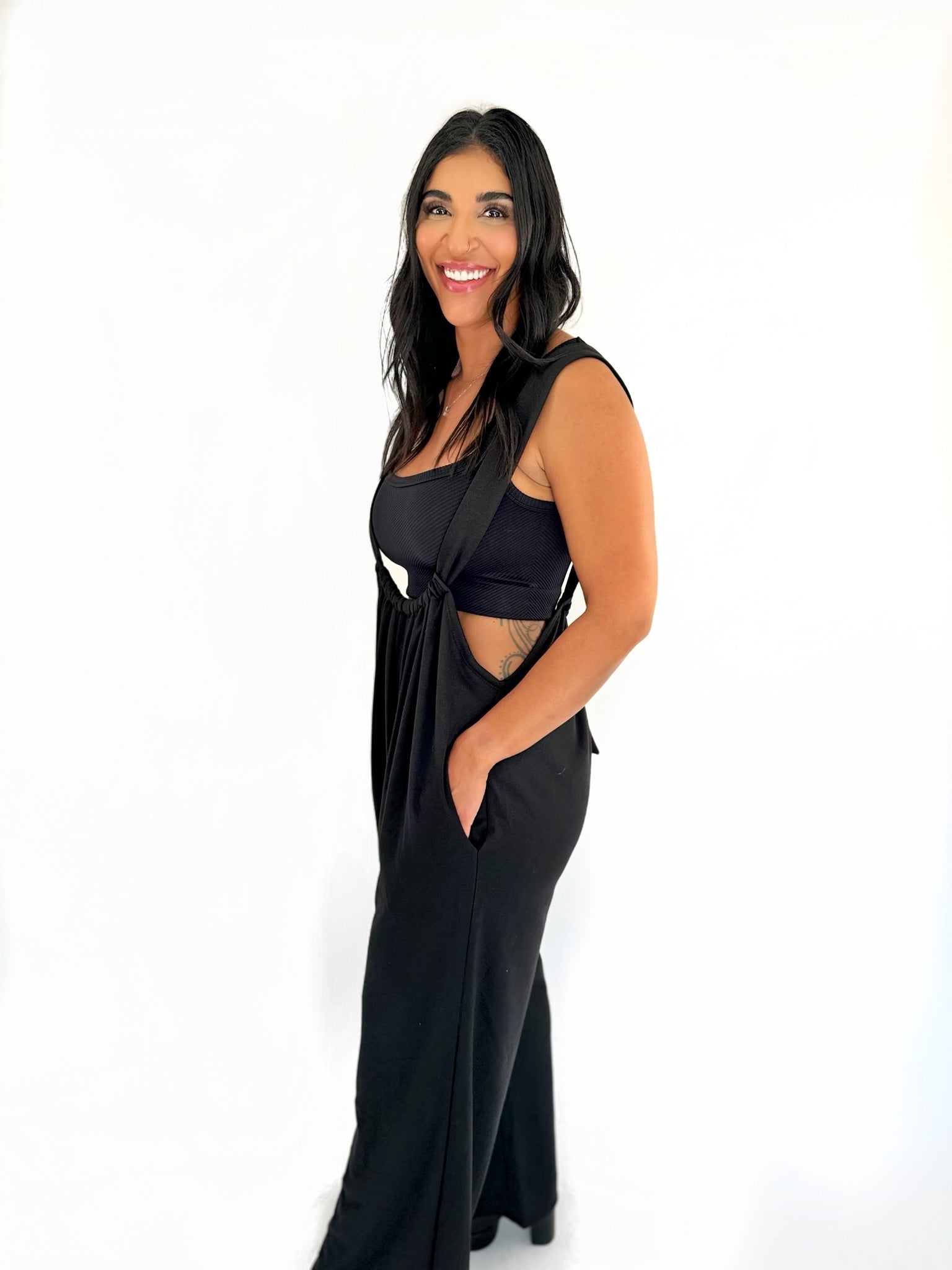 The Marquesa Jumpsuit is a great addition for any wardrobe. Its tailored and adjustable straps give it a flattering fit and its relaxed-fit silhouette offers unbeatable comfort. Featuring two pockets for convenient storage, it's available in an appealing black hue.
