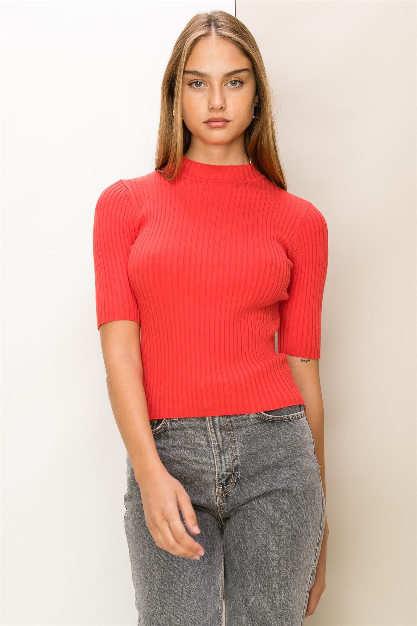 Stylish yet versatile, the Red Turtleneck is the perfect addition to any wardrobe. Its short sleeves offer a modern twist to the classic turtleneck design, making it a must-have for any fashion-forward individual.