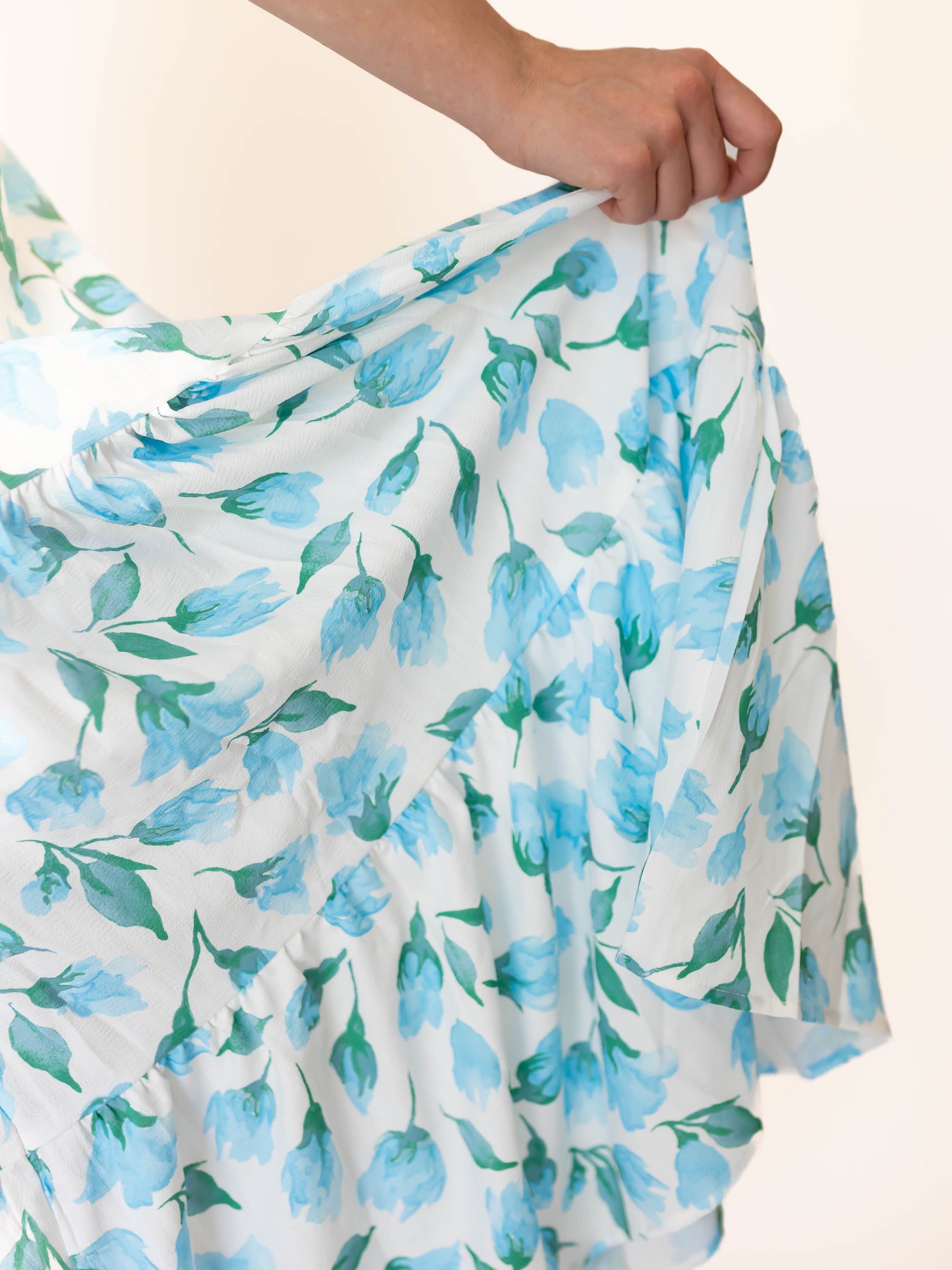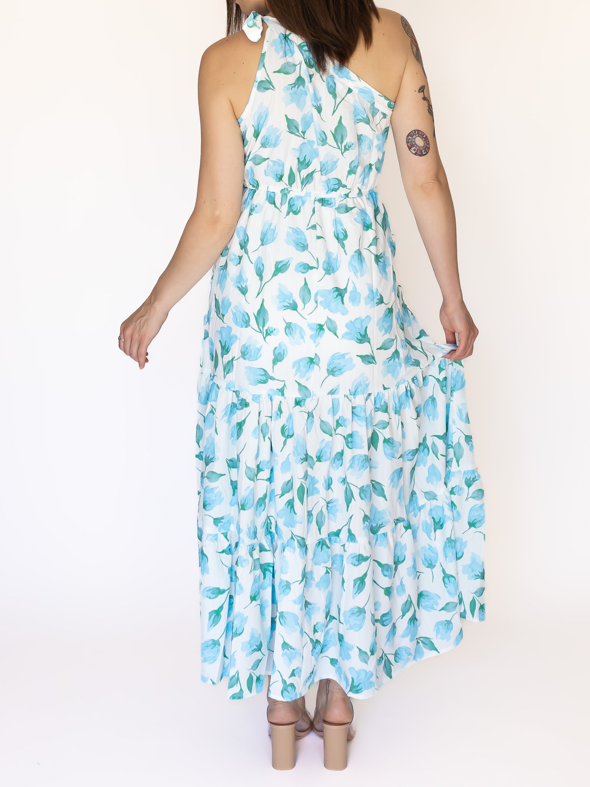 Sway in style in this daringly-chic maxi one shoulder tie floral dress in blue! Flaunt your fashionista risks with flair.