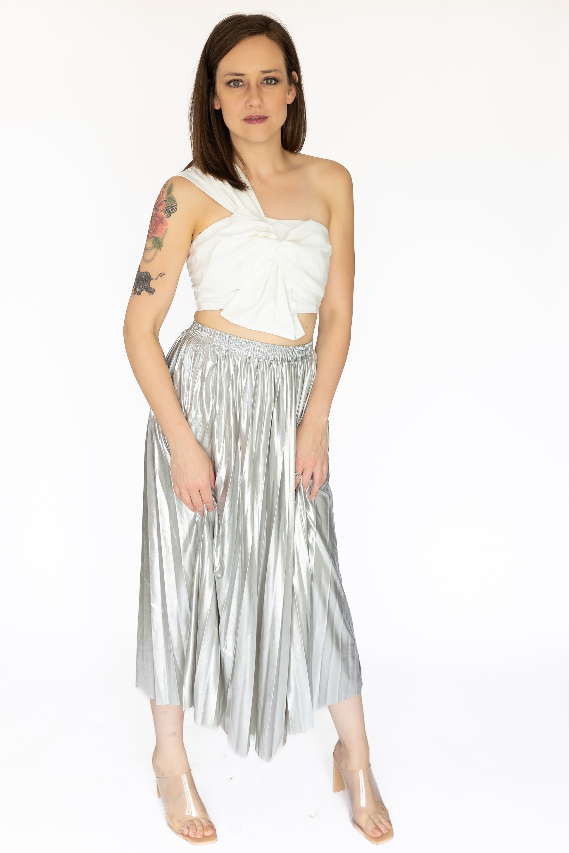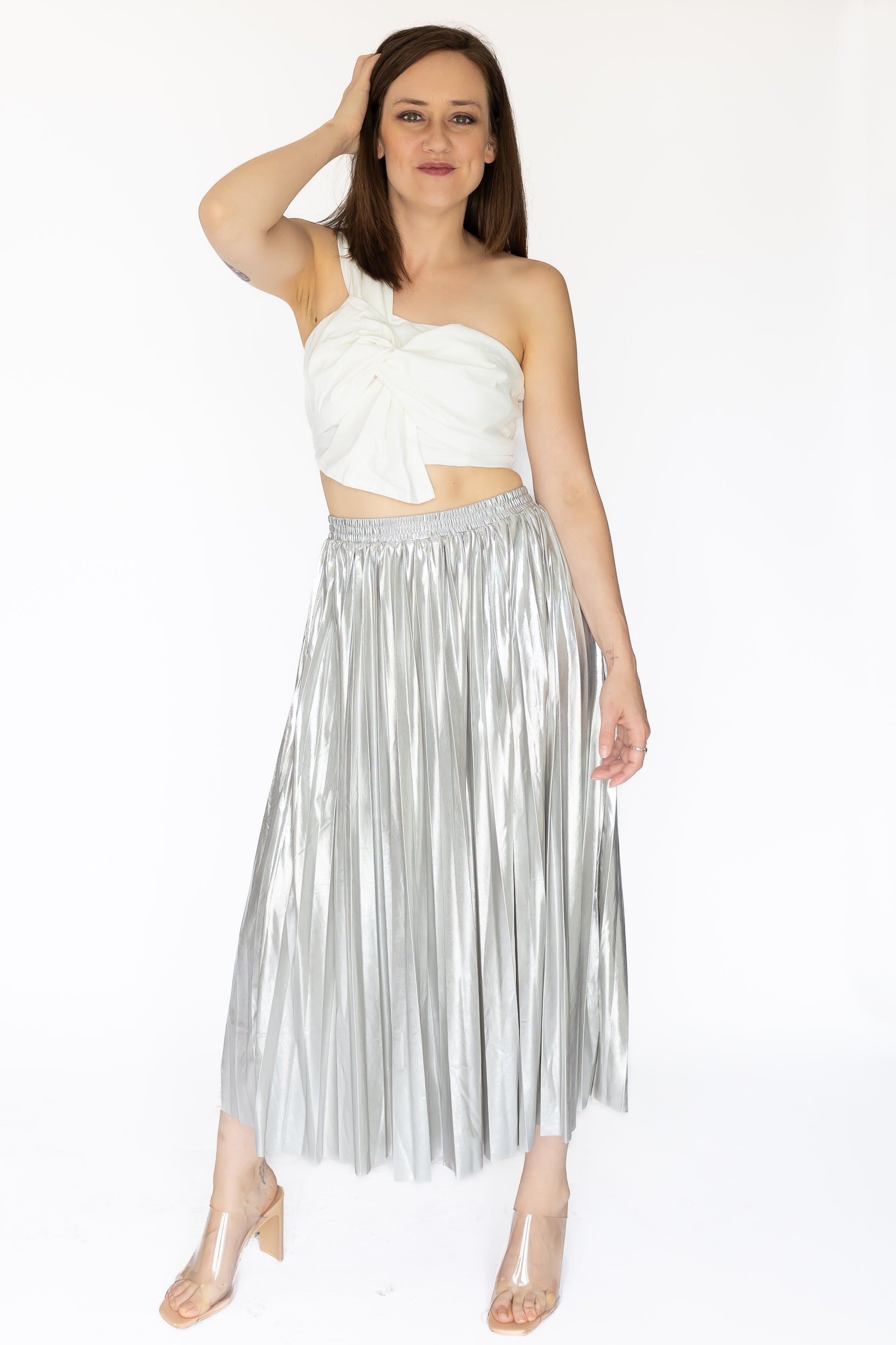 Looking to add some style and flair to your closet? The Savannah Top is the perfect touch for any look! This off-white one-shoulder piece features an eye-catching front tie bow illusion that adds a touch of drama - so you can make a statement without having to say a word!