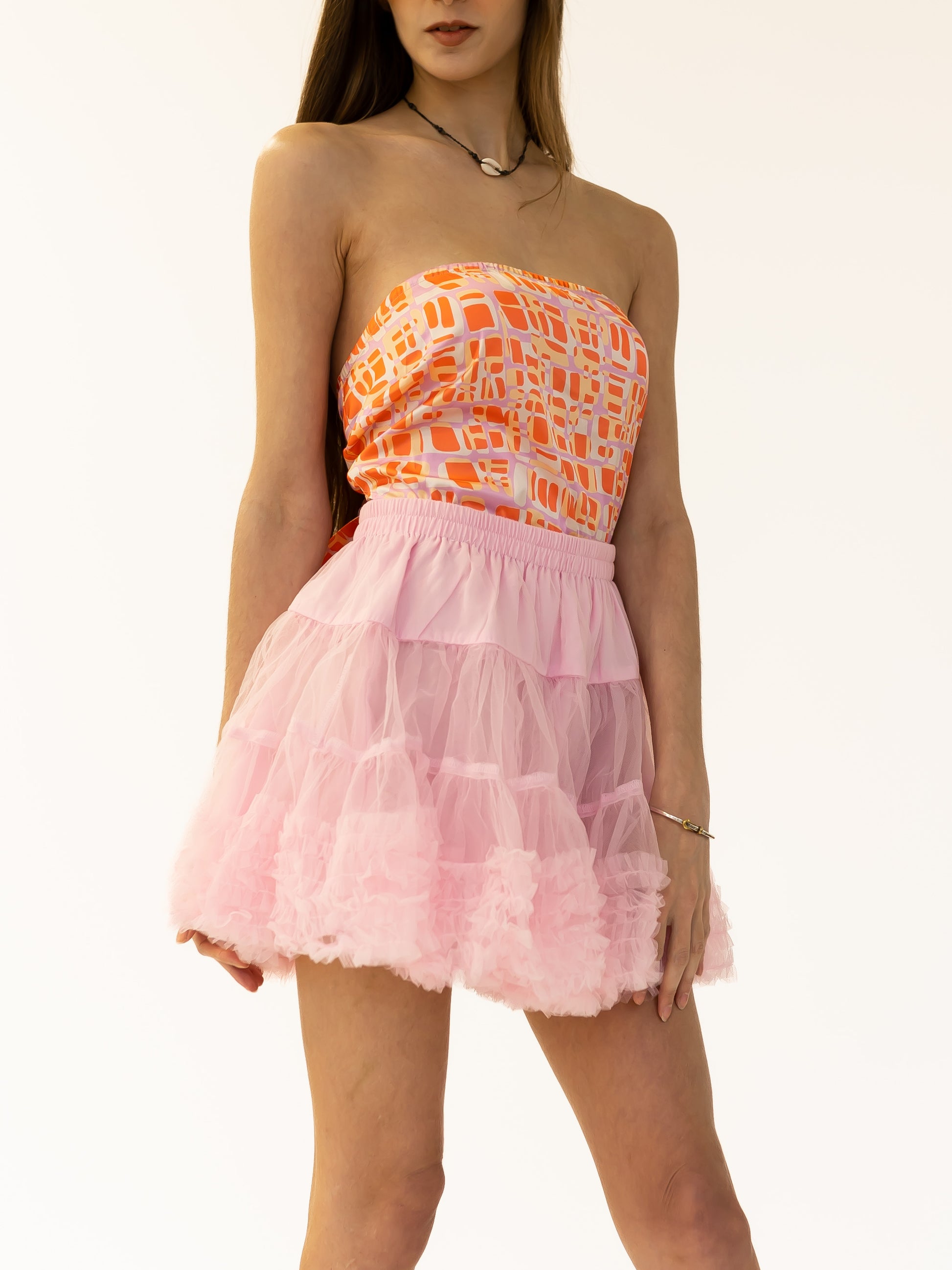 Crafted with sophistication, the Papaya-hued back-tied triangle bandeau top is sure to make a luxe statement.