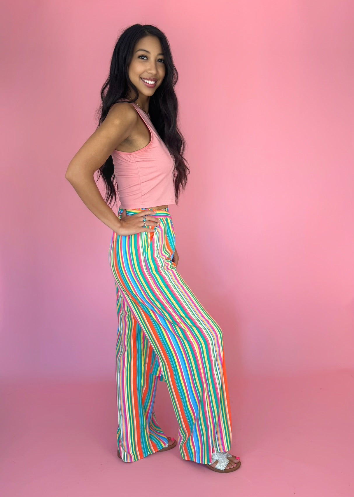 Featuring a striking color palette and a flattering front tie, these stylish striped pants are sure to elevate your wardrobe.