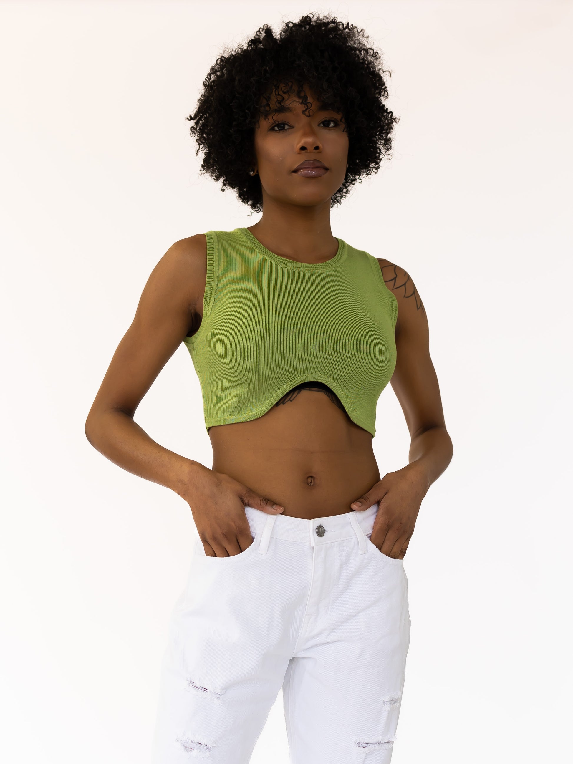 Crafted from a lightweight, knit fabric, this elegant Amazon Green crop top features a chic silhouette and luxurious texture.